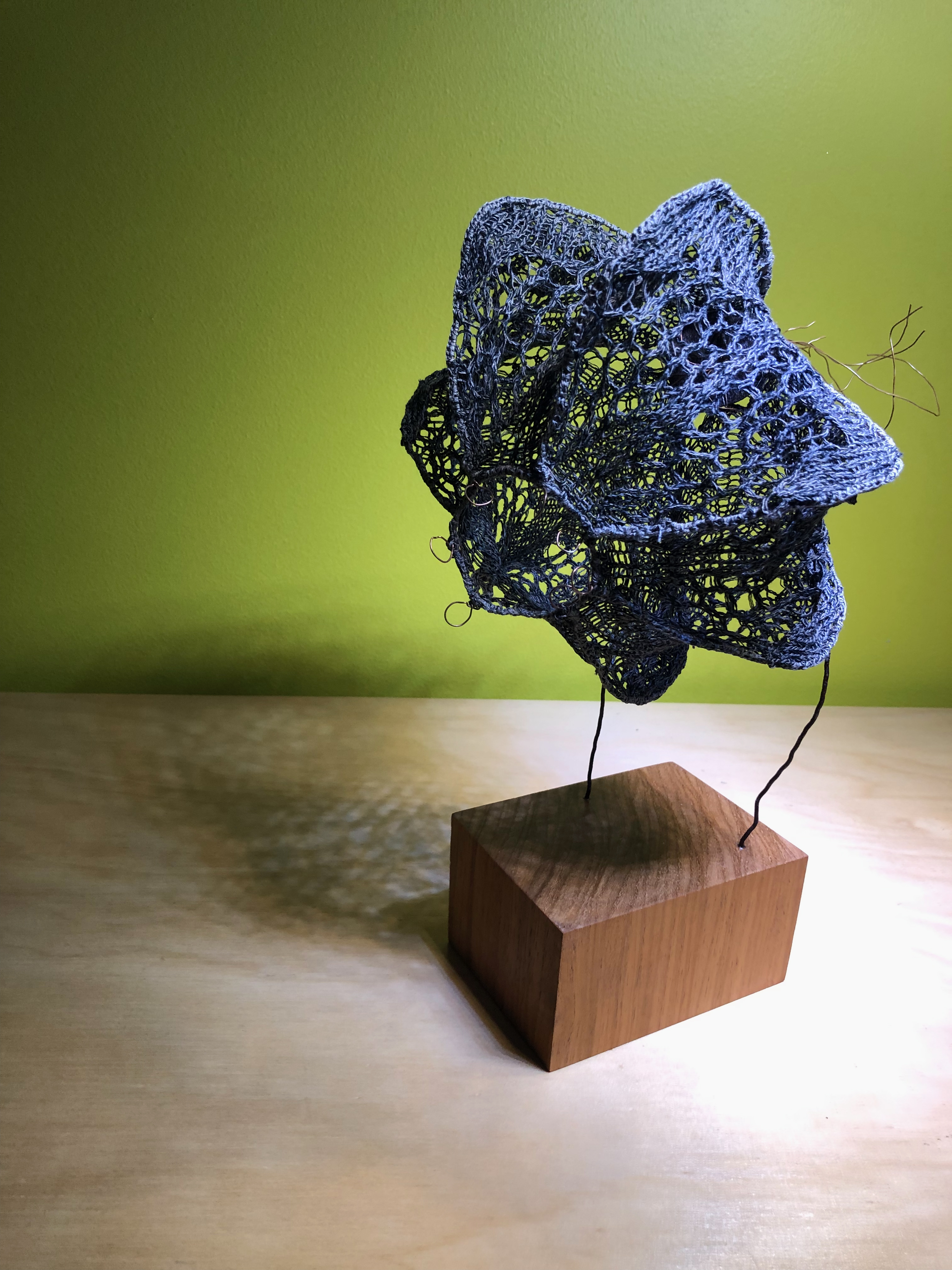 Over the following years, I have added tools and skills to my kit. I have moved from the inks and solvents of printmaking to more ecologically friendly eucalyptus dyes and rust printing. I added handstitching and knitting to my drawing practice. Throughout, I have maintained a love affair with paper – and with pushing its limitations.