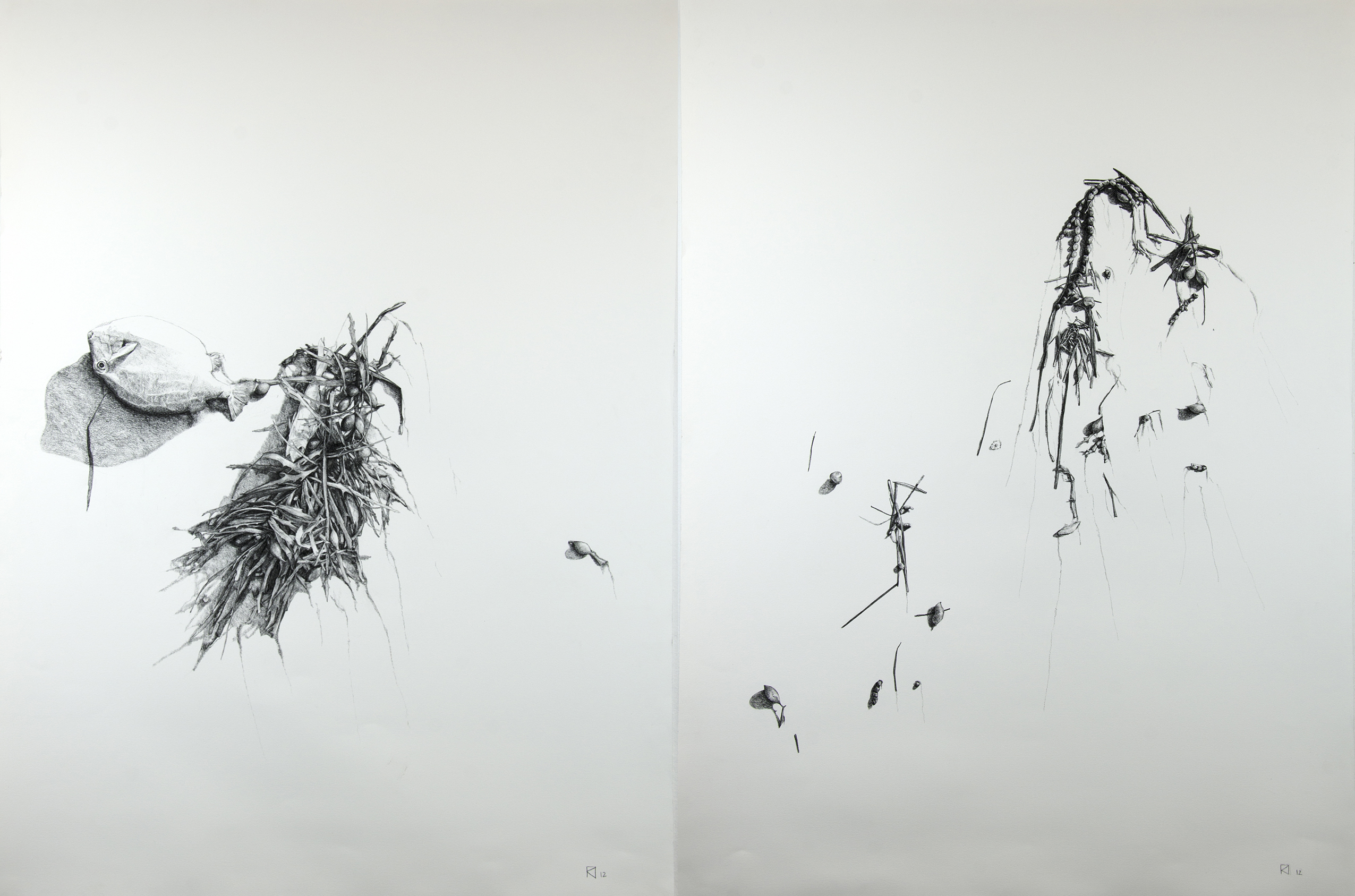 ‘seaweed (gannet beach) i ‘, 2014, pastel pencil, charcoal pencil, ink on BFK Rives paper, 108 x 100cm SOLD