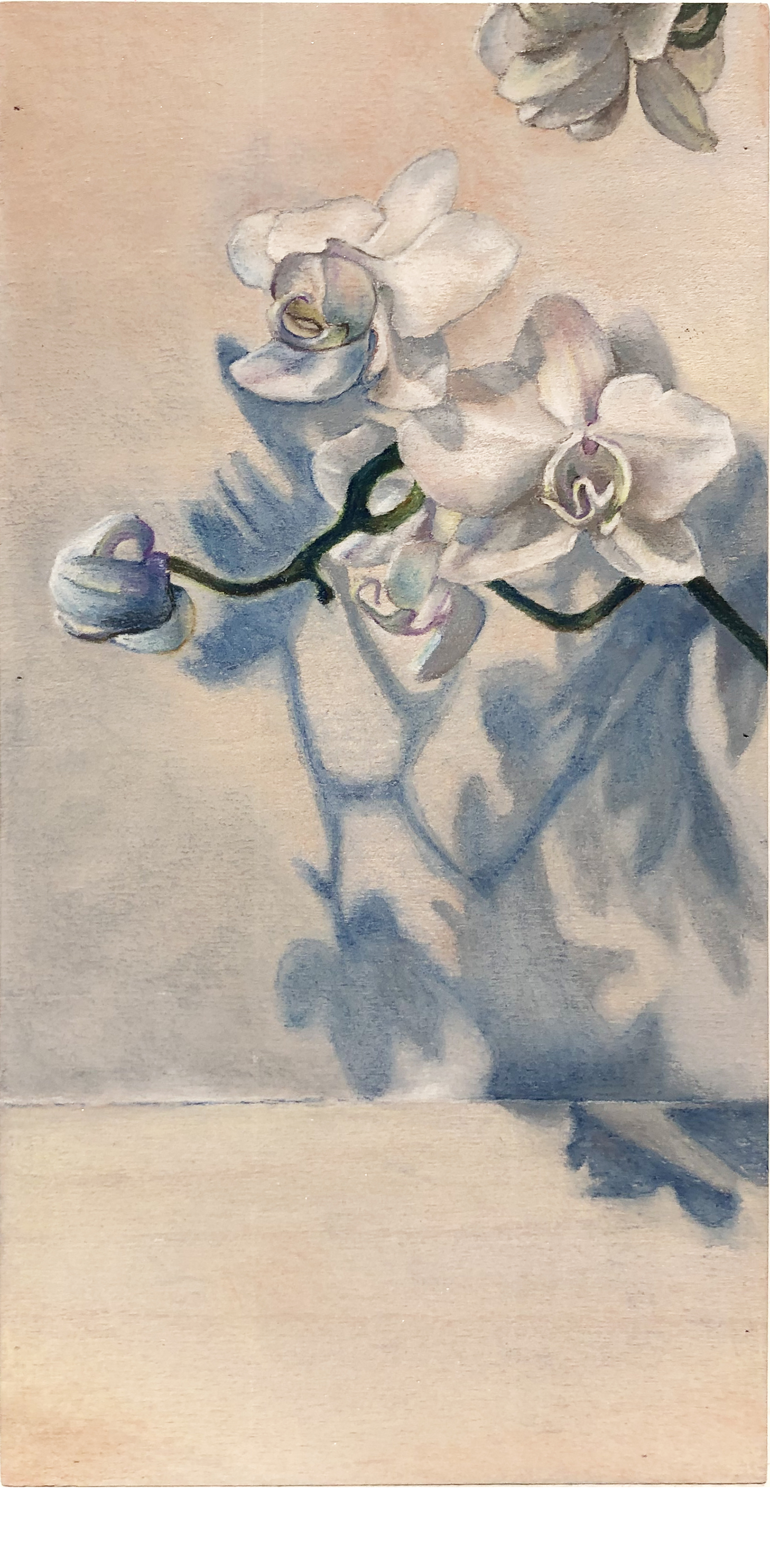 ‘gift orchid’ 2024, pastel pencil and gesso on wood panel, 30 x 15cm SOLD