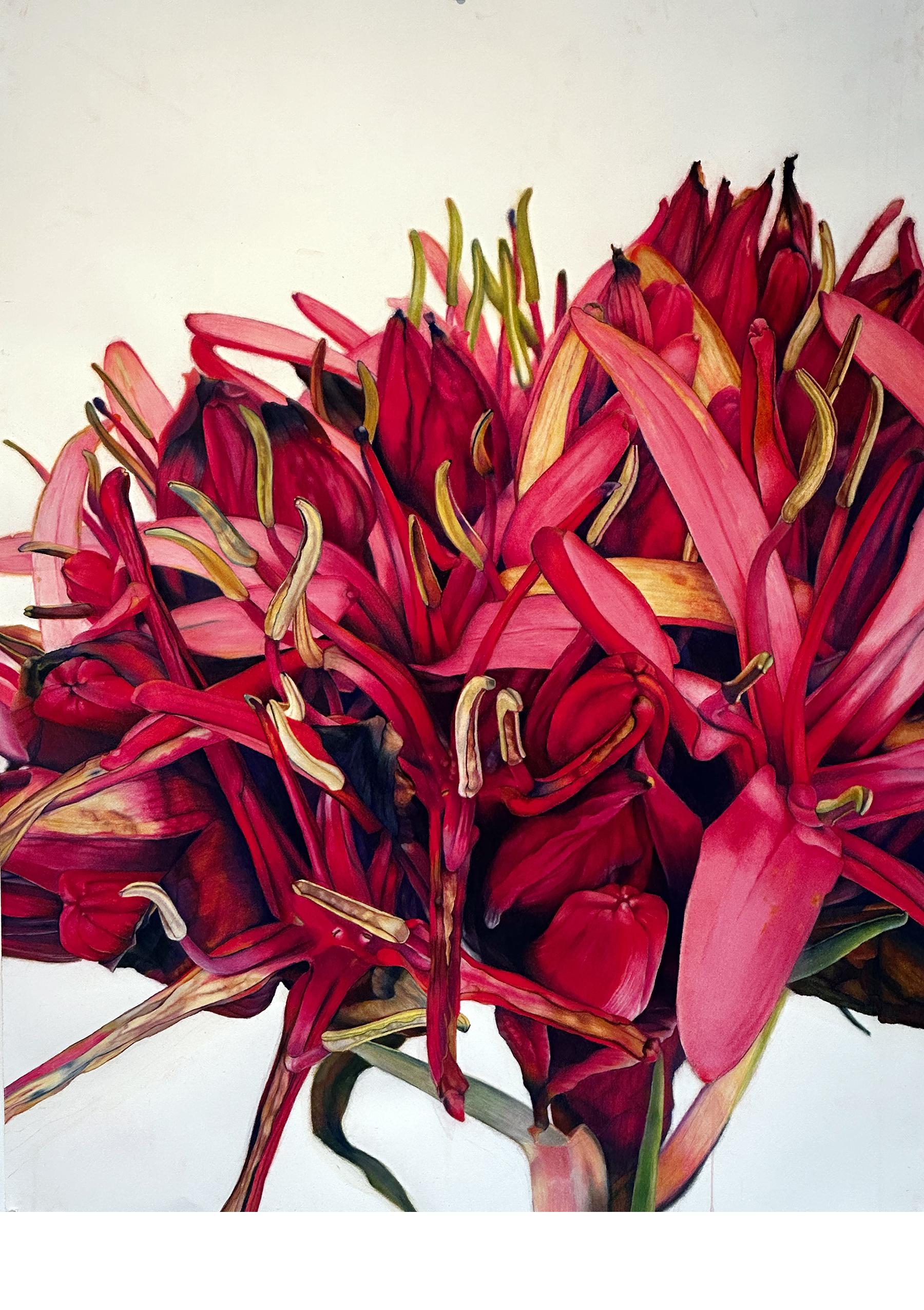 ‘Study in Pink (gymea lily)’ 2025, pastel on BFK Rives paper, 106 x 80cm SOLD